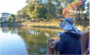 今回のワークショップでは、須玖岡本遺跡のある「奴国の丘歴史公園」を中心に、音を探し、録音していきました。弥生時代の甕棺墓等が発見された古代ロマン溢れるこの場所で聴こえてきたのは、飛行機の音、車が坂をのぼる音、葉が風に揺れる音、鳥の鳴き声、人々の楽しそうな話し声、そして静寂-。良い意味で何もなく、平和で穏やかな空間であることを、音から捉えることができたのです。